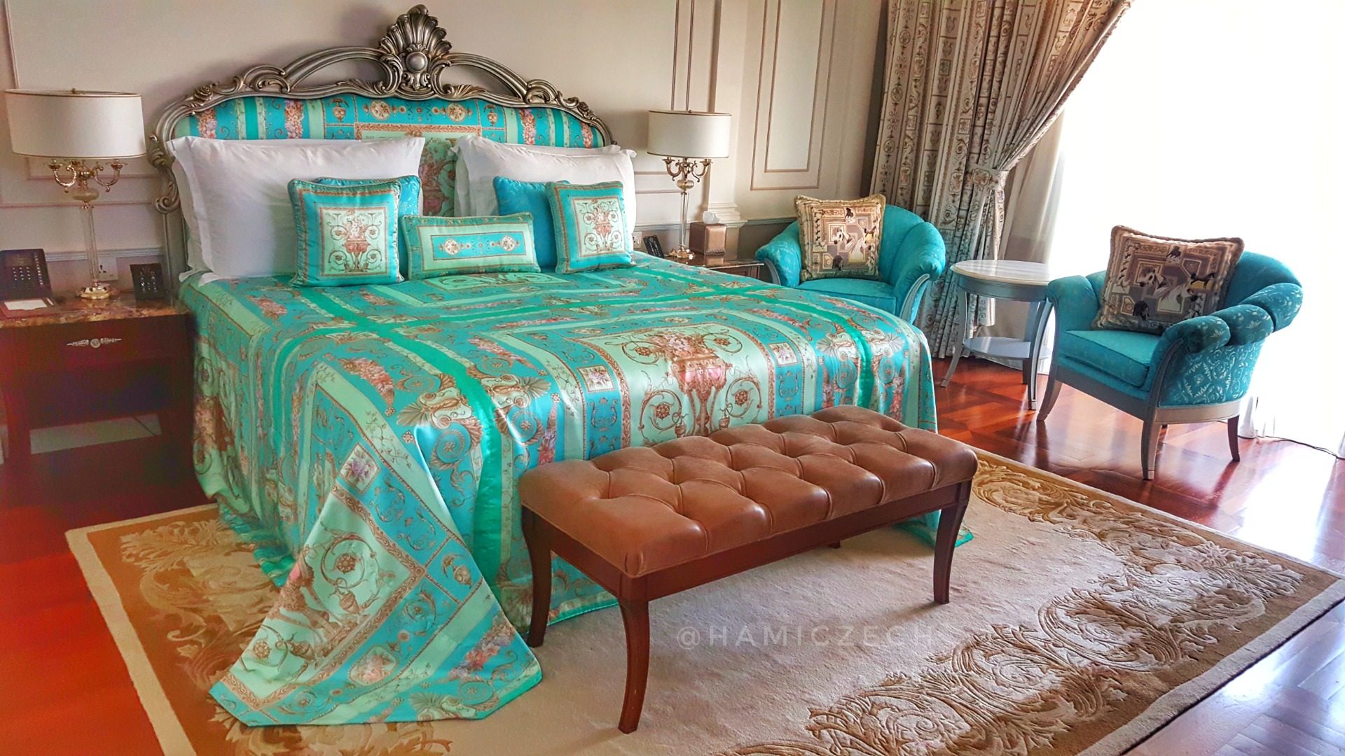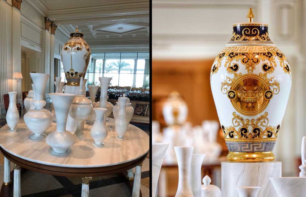As you approach the majestic entrance of Palazzo Versace Dubai, you are immediately transported to a world of grandeur and sophistication. The impressive architecture, reminiscent of a 16th-century Italian palace, is adorned with intricate mosaics and Medusa head motifs, paying homage to the brand’s iconic emblem. The moment you step inside, you are greeted with warm Arabian hospitality and the unmistakable scent of Versace’s signature fragrance.