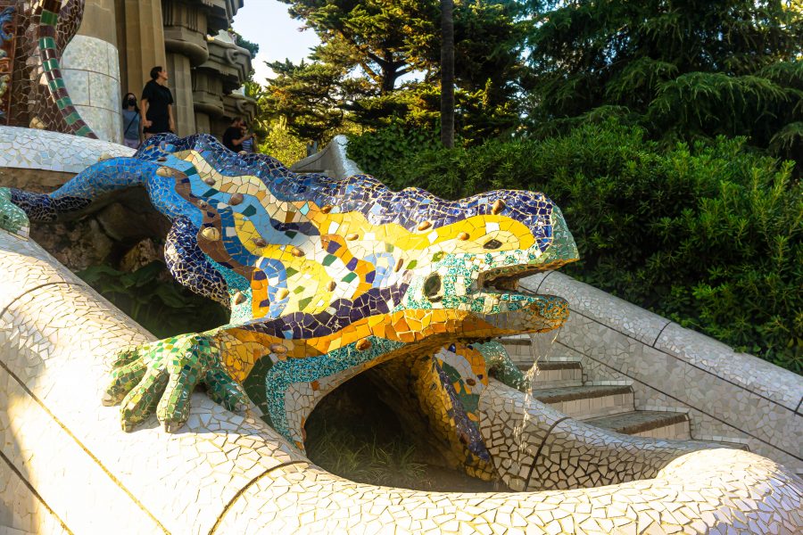 Park Güell is a place where you step into a fairy tale. Meandering pathways are adorned with colorful mosaics, eccentric sculptures, and undulating benches that seem to flow like waves. At the entrance, the famous mosaic-covered salamander, known as “El Drac,” guards the park, inviting visitors into a world of wonder and imagination.
