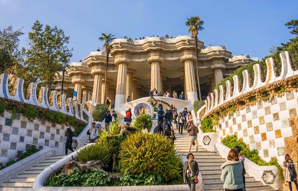 As you ascend the grand staircase, panoramic views of Barcelona unfold before you, framed by the iconic trencadís (mosaic) work that defines Gaudí’s aesthetic. It’s a place where you can lose yourself in the harmony of art and nature, where every nook and cranny seems to whisper tales of a creative genius.