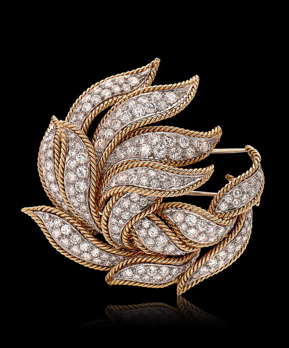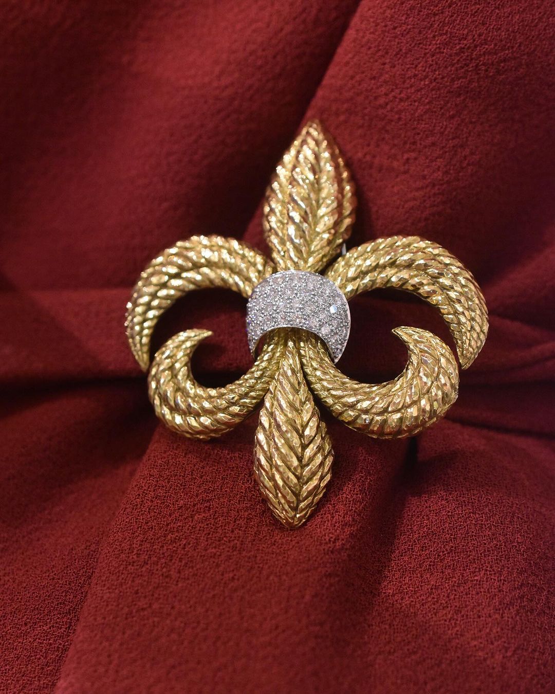 Delving into the annals of history, we unearth a late 19th-century masterpiece from Chaumet—the Leaf Brooch “Holly.” This intricately crafted brooch, adorned with diamonds and natural pearls, is a testament to Chaumet’s timeless elegance. David Webb, a name synonymous with luxury and innovation, unveils not one but two spectacular brooches. The first, a Diamond Gold Platinum Flower Brooch, is a symphony of precious metals and stones. The second, a Diamond Fleur-de-lys Clip-Brooch in Gold and Platinum, is a testament to Webb’s ability to seamlessly blend traditional motifs with contemporary design.