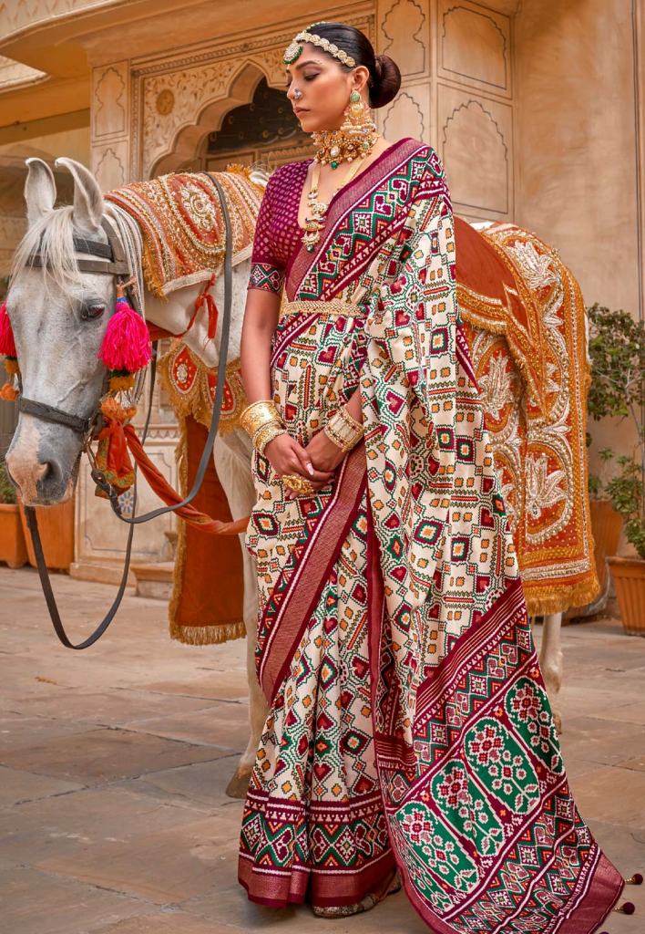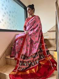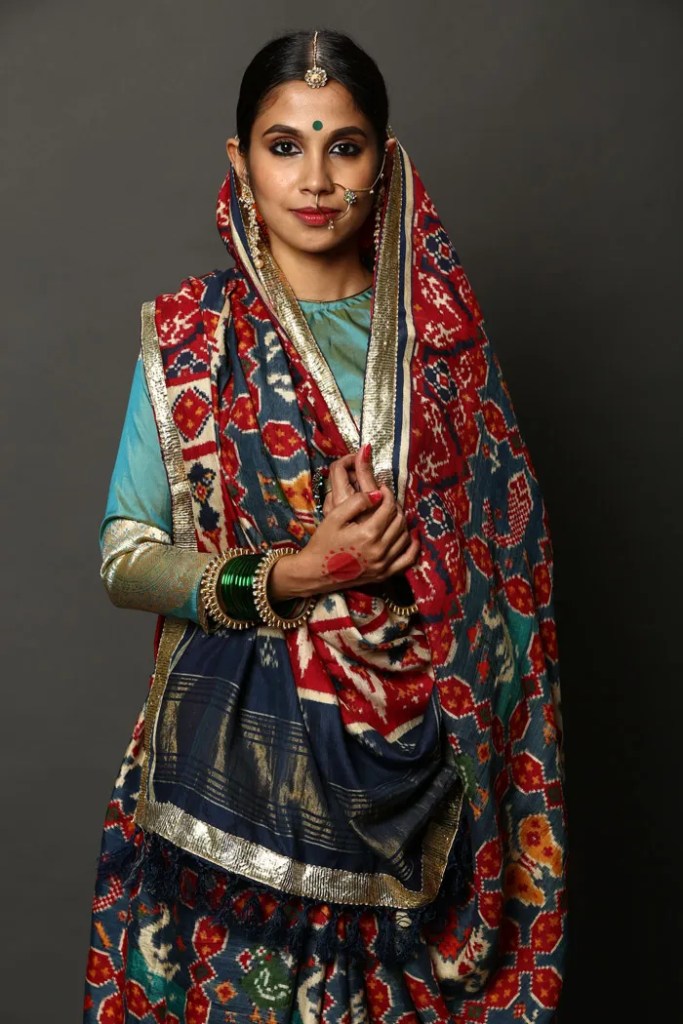 Originating from the Patan region of Gujarat, Patola saris are prized for their double ikat weaving technique, where both the warp and weft threads are tie-dyed before weaving.