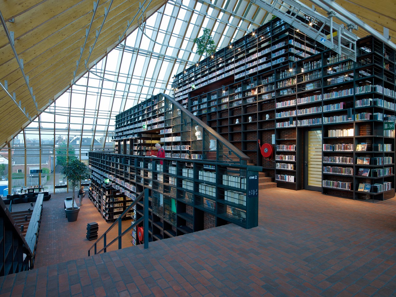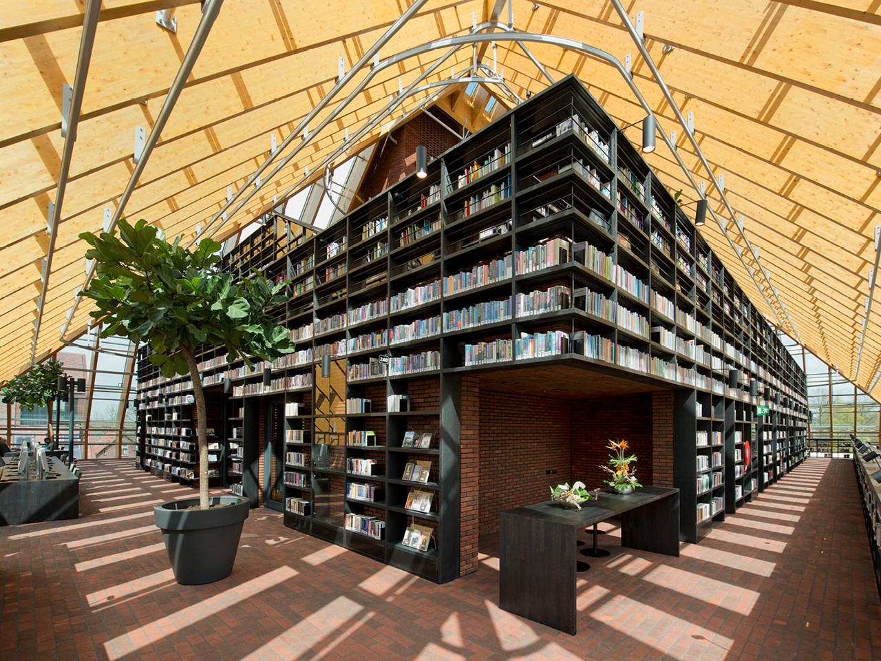 The library’s design addresses both aesthetic and functional considerations. The transparent exterior symbolizes openness and accessibility, while the interior’s ascending pathway leads visitors on a journey through the library’s extensive collection. Along the way, readers encounter various reading nooks, study areas, and even a cafe, all strategically placed to encourage engagement with the space. Book Mountain not only serves as a library but also as a community center, hosting events and exhibitions that enrich the cultural fabric of Spijkenisse.