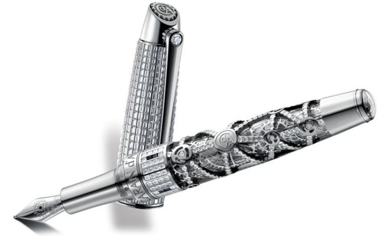 The Caran d’Ache 1010 Diamonds Fountain Pen, valued at $1 million, takes inspiration from the world of horology, its design featuring delicate engravings reminiscent of a Swiss timepiece, while over 850 diamonds sparkle from its body.