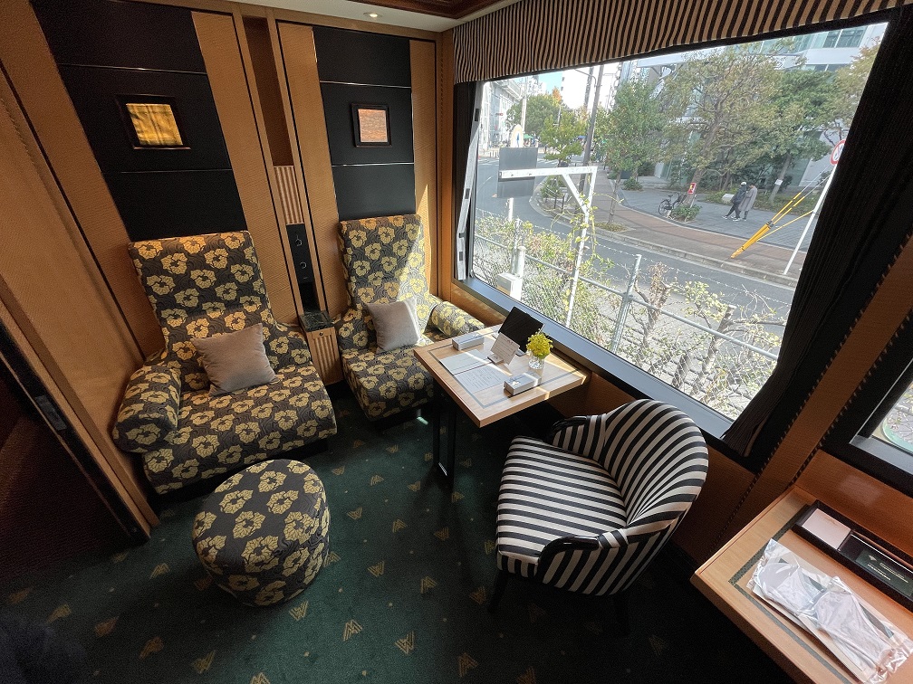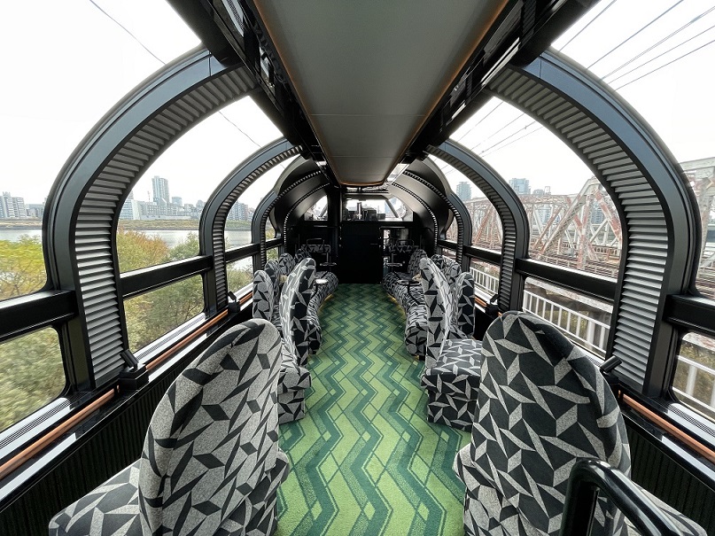 The observation car, located at the very rear of the train, is perhaps Mizukaze’s crown jewel. With an open-air platform and plush indoor seating, it invites passengers to lounge in time, cocktail in hand, as landscapes melt into twilight.